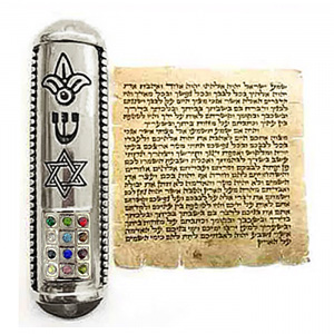 Mezuzá 12 Tribos de Israel com Estrela de David – Prateada (brinde pergaminho não casher)