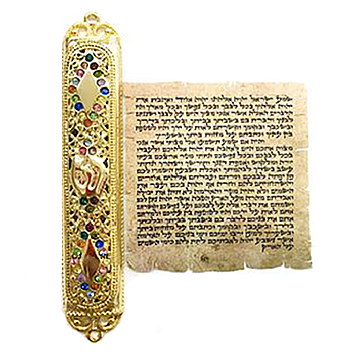 A Mezuzá é o nome de um mandamento da Torá que ordena que seja afixado no umbral das portas um pequeno rolo de pergaminho (cláf) contendo as duas passagens da Torá que trazem o mandamento, conhecidas como “Shema” e “Vehaiá” (Deuteronômio 6:4-9 e 11:13-21). A mezuzá deve ser afixado no umbral direito (do ponto de vista de quem entra) de cada aposento do lar (com exceção do banheiro). Se não for possível colocá-la em todas as portas, deve-se esforçar para pelo menos colocar na porta de entrada principal. A mezuzá é afixada a pelo menos sete palmos de altura do chão. Alguns judeus a colocam totalmente na vertical e outros levemente inclinada na diagonal, com a extremidade de cima virada na direção do cômodo. Costuma-se beijar a mezuzá toda a vez que se passa pela porta, para lembrar das orações que estão contidas ali dentro e os princípios que elas carregam.